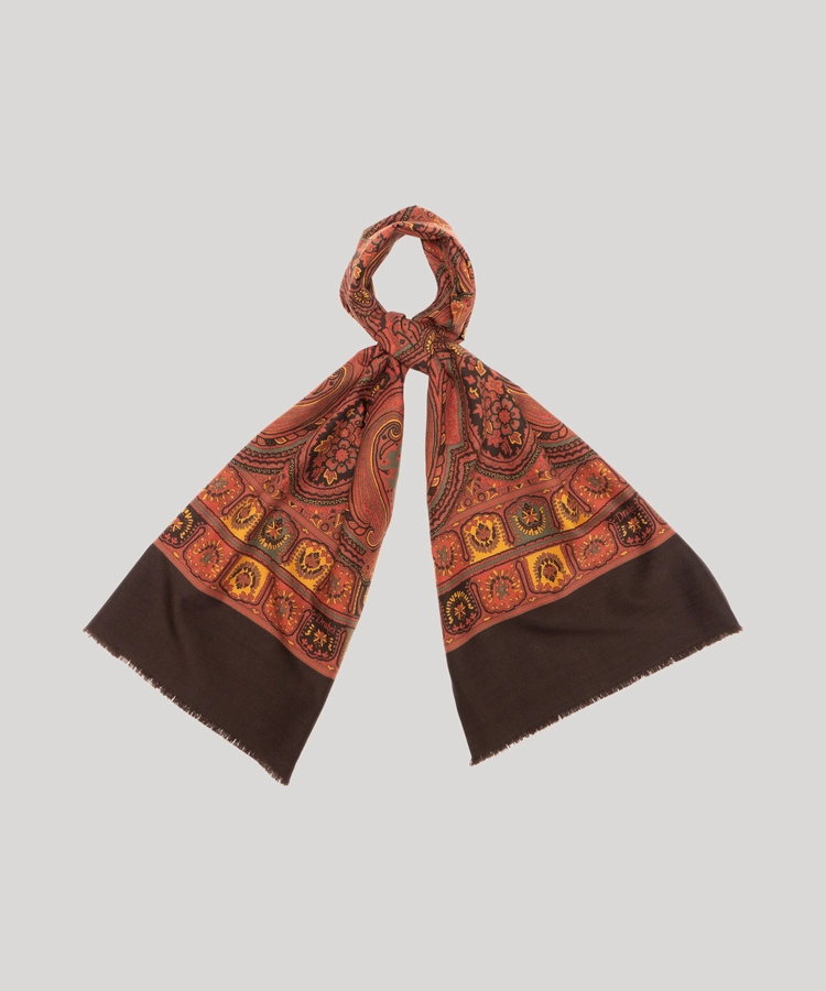 [Drake's] Medallion Scarf - Brown/Magenta/Green