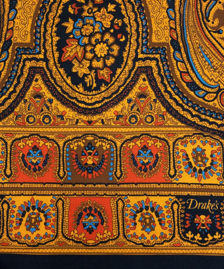 [Drake's] Medallion Scarf - Navy/Green/Rust